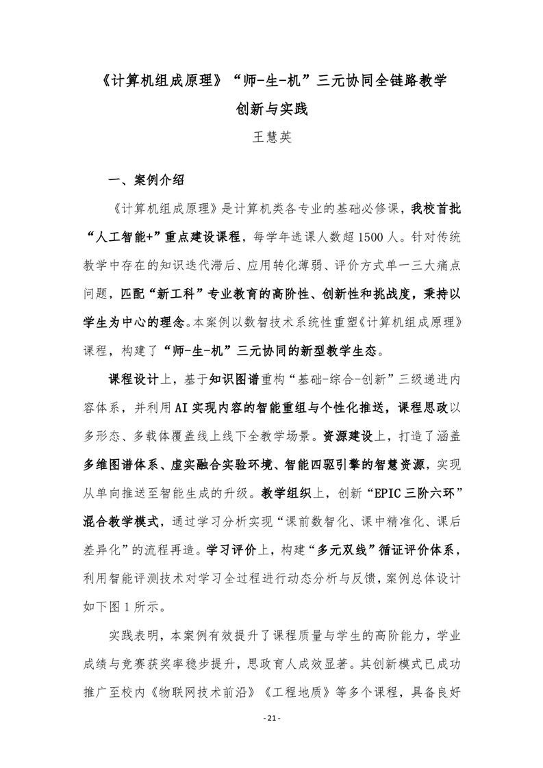 数智技术赋能课程建设案例 - 《计算机组成原理》“师-生-机”三元协同全链路教学创新与实践