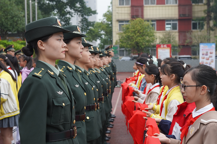 (本网讯 文/图 武装部 朱文韬 )为进一步加强爱国主义教育精神,大力弘扬爱国主义教育,厚植家国情怀,2024年11月1日早,党委武装部组织我校国旗护卫队特设党支部,前往重庆市巴南区松花江小学举行了升旗仪式。