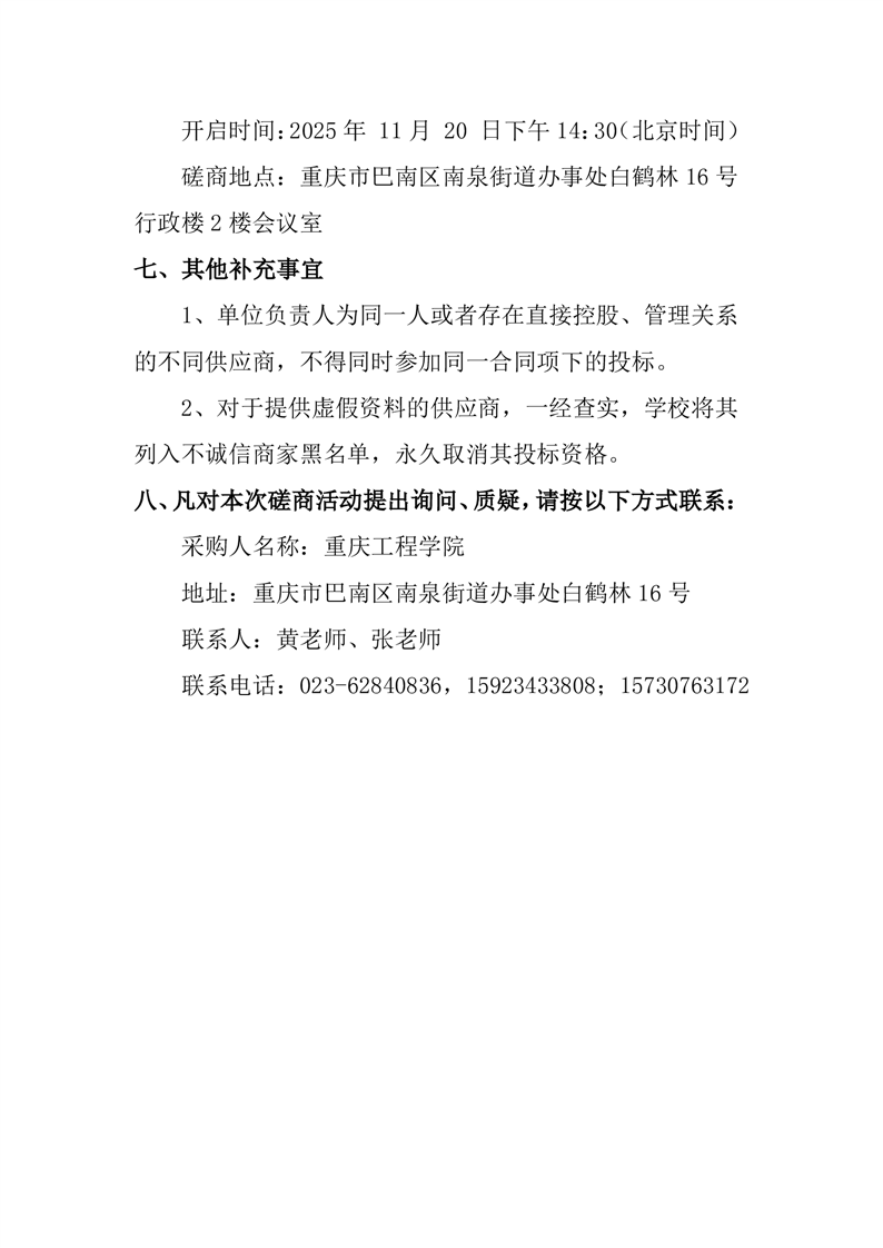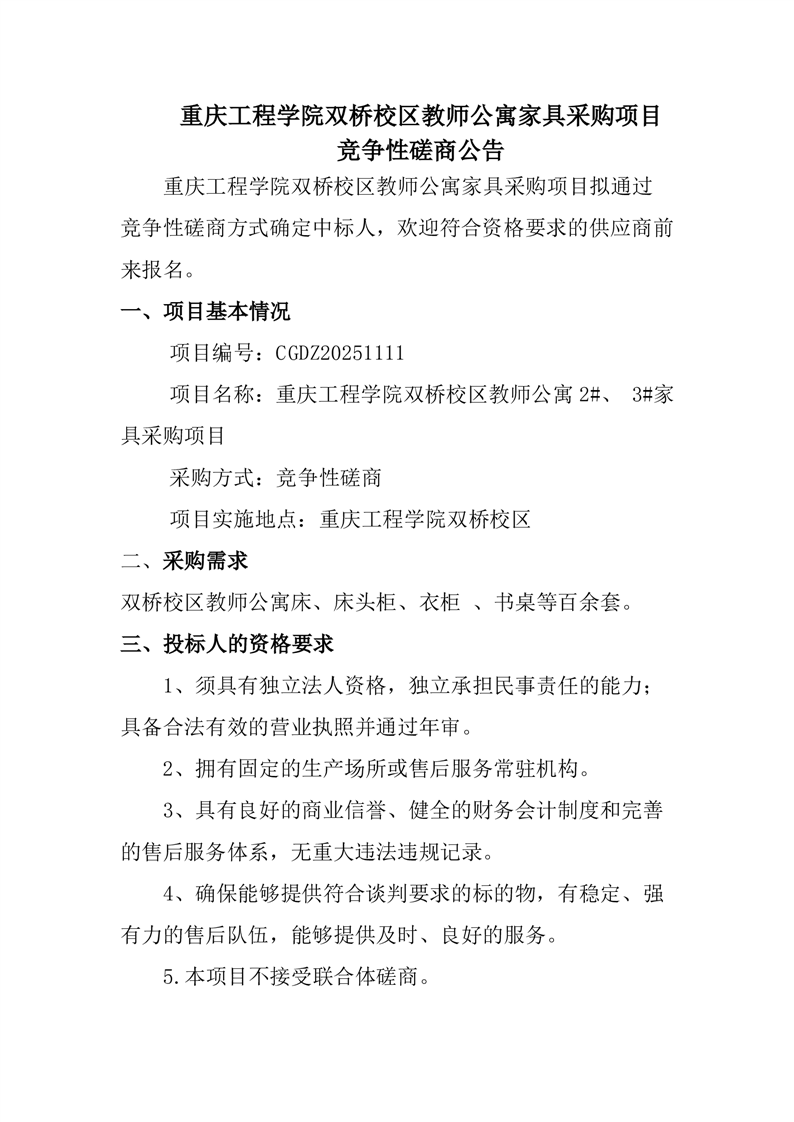 重庆工程学院双桥校区教师公寓家具采购项目竞争性磋商公告