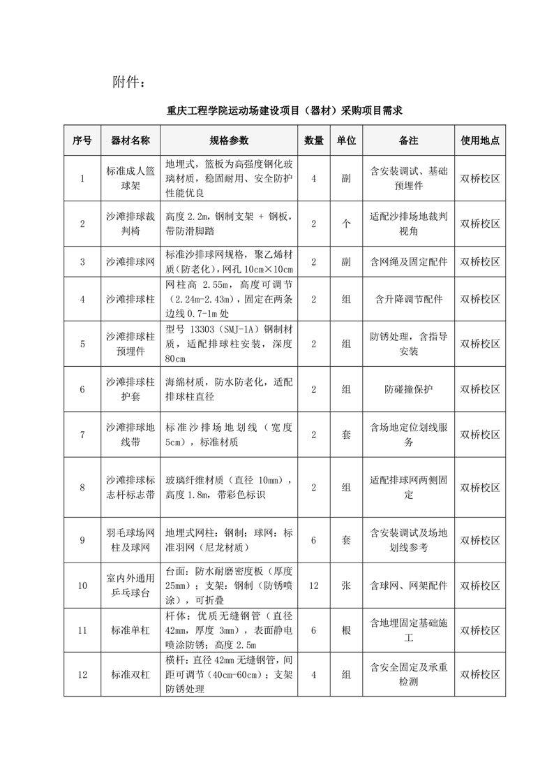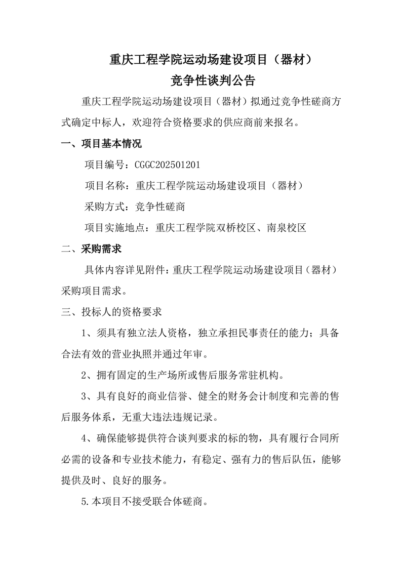 重庆工程学院运动场建设项目(器材)竞争性谈判公告