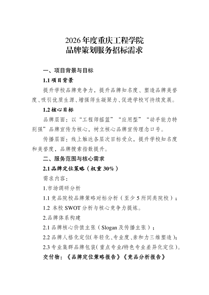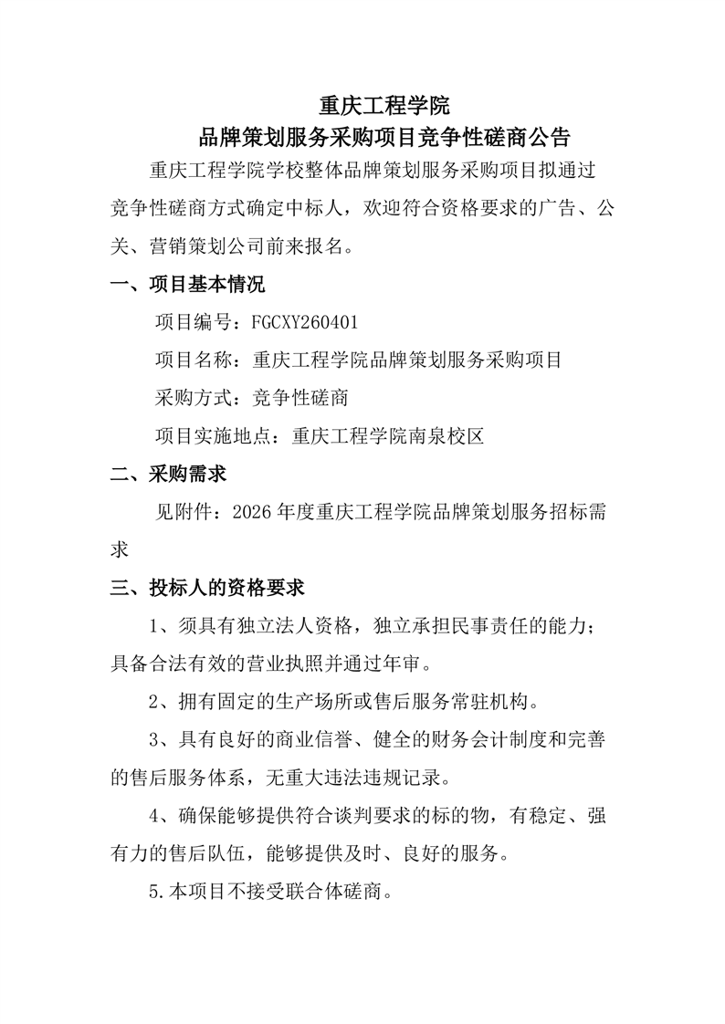 重庆工程学院 品牌策划服务采购项目竞争性磋商公告