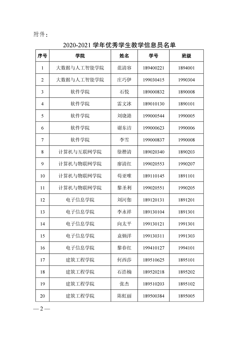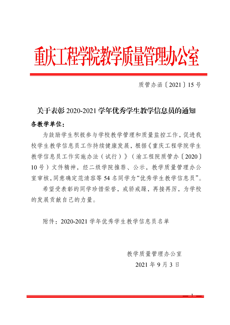 关于表彰2020-2021学年优秀学生教学信息员的通知