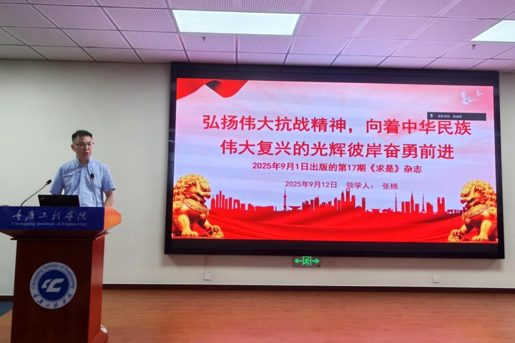 在政治理论学习环节,学院党总支副书记张楠以《弘扬伟大抗战精神,向着中华民族伟大复兴的光辉彼岸奋勇前进》为领学内容。他结合历史影像与新时代成就,深入解读抗战精神中“天下兴亡、匹夫有责”的爱国情怀与“百折不挠、坚忍不拔”的奋斗信念,强调:“抗战精神是中华民族的脊梁,也是教育工作者攻坚克难、培根铸魂的精神灯塔。”