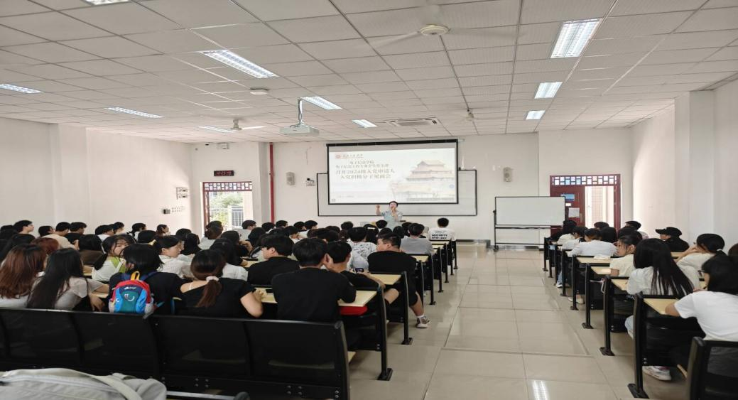 本网讯(文/图 罗梓月)为端正入党动机、明晰入党流程,夯实党员发展工作质量根基,9月16日,电子信息学院电子信息工程专业学生党支部联合通信工程专业学生党支部在6201举行“探寻红色初心,规范入党流程”专题培训。本次培训由电子信息工程专业学生党支部书记向悉嘉主持,通信工程专业学生党支部书记秦琴、24级入党申请人和入党积极分子共计110余人参与。