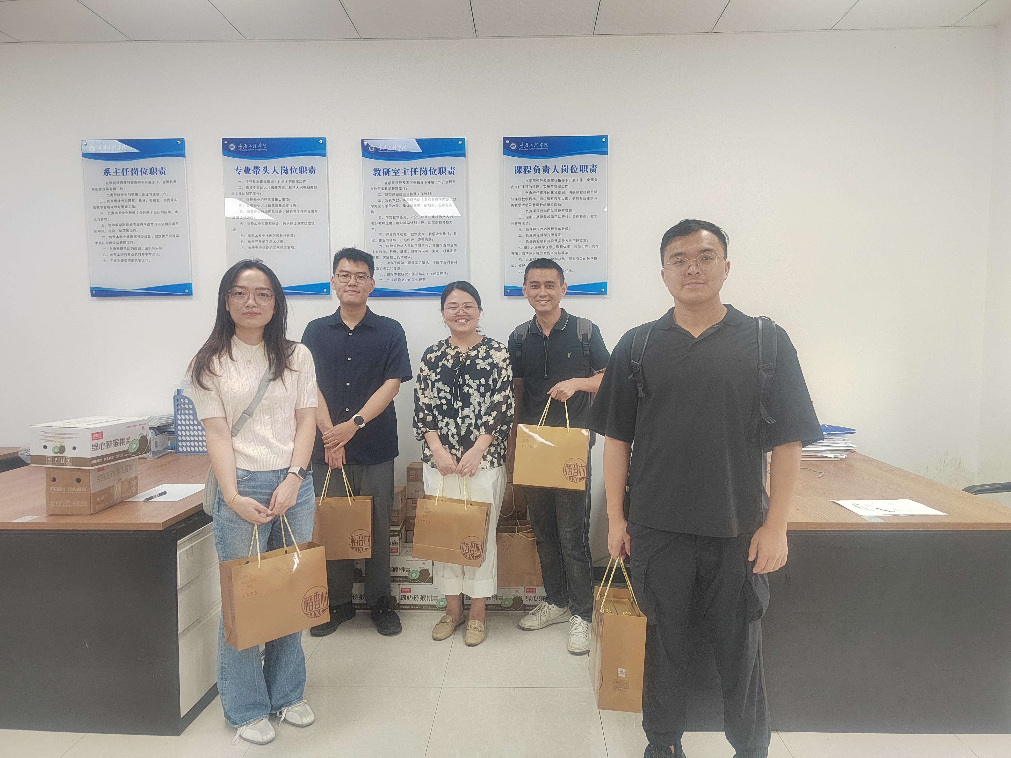 本次活动特别准备了寓意深远的节日礼包:象征团圆的月饼、寓意平安的柚子以及代表健康的猕猴桃。学院领导高度重视慰问工作,院长亲自前往双桥校区,为双桥授课教师和辅导员送上节日问候;党总支书记等院领导在南泉校区精准将慰问物资送达各系部,确保每位教师都能感受到学院的关怀;这一行动,生动诠释了“码农之家”的温暖理念。