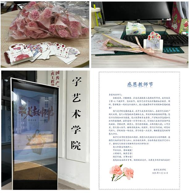 本网讯(文/图 数艺分工会)9月10日,在这个充满感恩与敬意的日子里,数字艺术学院精心策划并开展了一系列温馨而富有意义的庆祝教师节活动,向辛勤耕耘在教育一线的教师们致以最诚挚的节日问候与美好祝福。