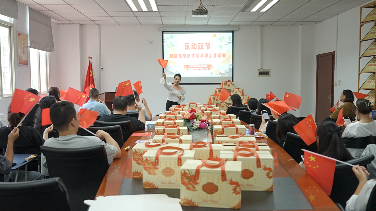 活动在《我和我的祖国》合唱声中达到高潮,全体教职工手持彩旗齐声高唱,熟悉的歌词、真挚的歌声,将家国情怀与节日温情交融。活动结束后,学院领导为老师们送上精心准备的中秋伴手礼,让大家感受到学院大家庭的温暖与关怀。