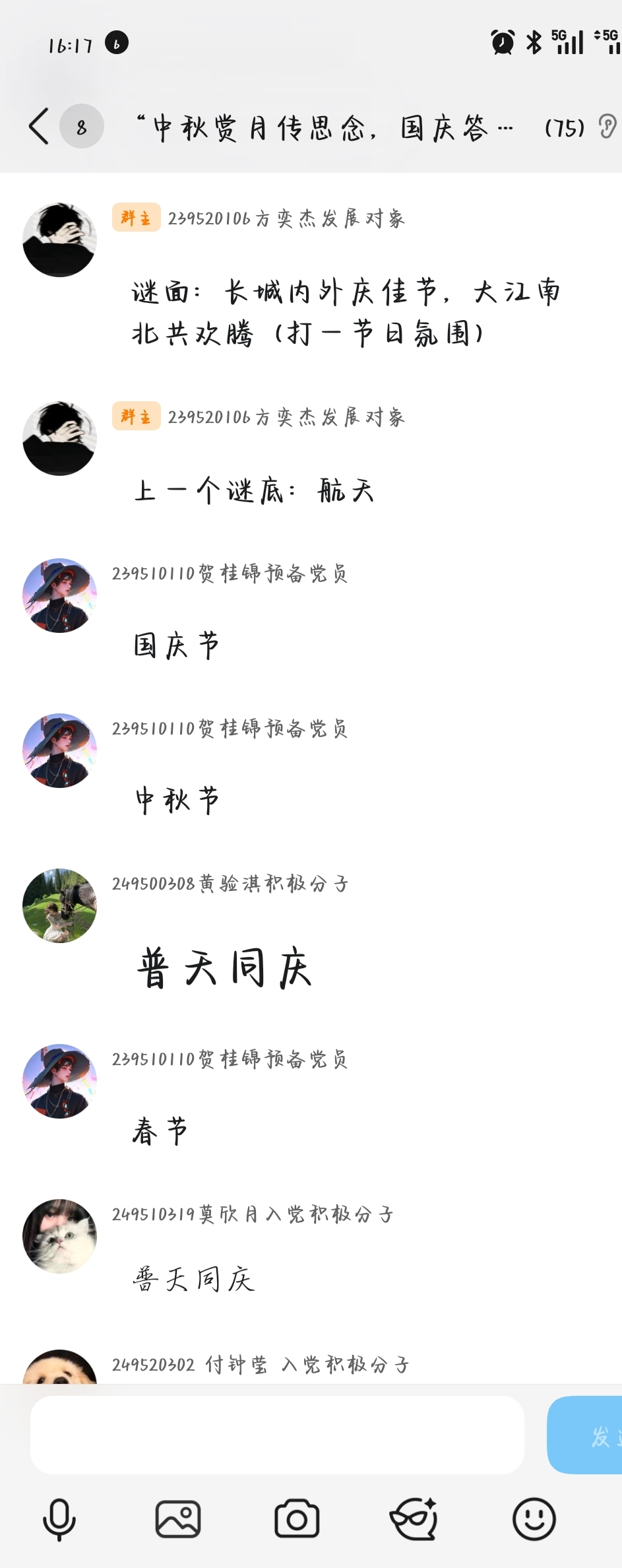 “我的专属双节饭” 板块汇聚佳肴,金黄饱满的月饼、丰盛可口的家宴轮番 “登场”。一张张照片不仅承载着家庭温情,更将浓厚的节日仪式感展现得淋漓尽致。此外,同步开展的 “双节知识大闯关” 线上猜灯谜环节,凭借趣味性与知识性,成为本次活动的一大亮点。灯谜题目内容涵盖中秋传统习俗、国庆发展历程、校园文化特色等多个领域,学子们在线上热烈互动、踊跃抢答,趣味比拼不仅加深了对双节文化内涵与家国发展脉络的认知,也进一步厚植了爱国情怀。