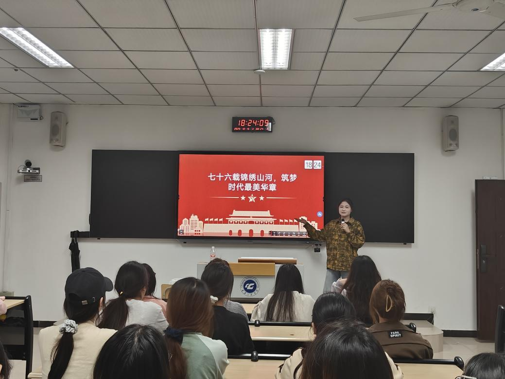 本网讯(图/文 彭星)为庆祝新中国成立76周年,深化爱国主义教育,2025年10月15日,新媒体电商学院学生党员实践教育中心于南泉校区S6311组织开展“七十六载锦绣山河,筑梦时代最美华章”主题学习活动。本次活动由王欢同学主讲,分中心全体成员及部分入党积极分子、发展对象、预备党员参与学习。