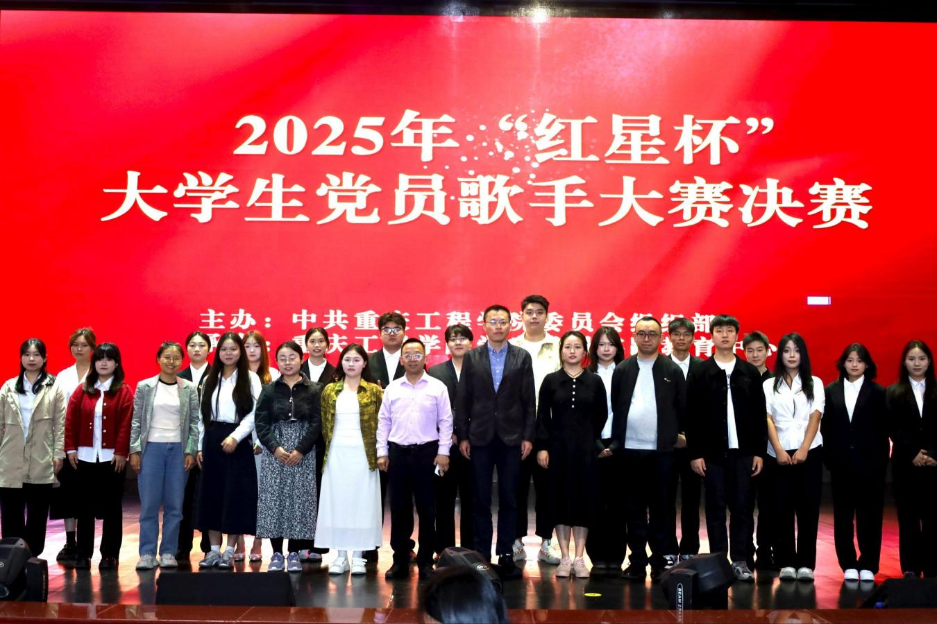 本网讯(文/图 曾心雨/王灿)10月22日下午,学术报告厅内歌声嘹亮、气氛热烈,由中共重庆工程学院委员会组织部主办的2025年“红星杯”大学生党员歌手大赛决赛在此顺利拉开帷幕。本次大赛紧扣“传承红色基因,唱响时代赞歌”主题,既是大学生党员展现精神风貌的舞台,更是重庆工程学院弘扬爱国主义精神的生动实践。