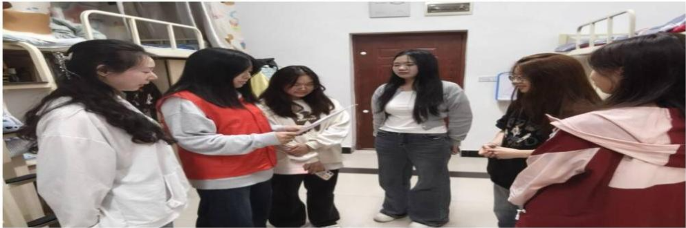 本次活动创新采用“1+2”分组模式,由“红色芯”宣讲团成员担任组长,带领两名党员实践教育中心成员组成专项宣传小队,深入各学生寝室开展“面对面”防疫宣传与隐患排查。宣讲过程中,小队成员结合基孔肯雅热典型案例,向同学们系统讲解病毒基本常识;同时详细列举“发热伴关节剧痛”等典型临床表现,通过对比症状帮助同学们精准区分基孔肯雅热与普通感冒,避免认知混淆。此外,队员们还围绕“做好寝室驱蚊消杀”“外出做好防蚊措施”“出现症状及时就医”等关键内容,逐一普及科学预防方法与应急处置流程,确保防疫知识入脑入心、落到实处。