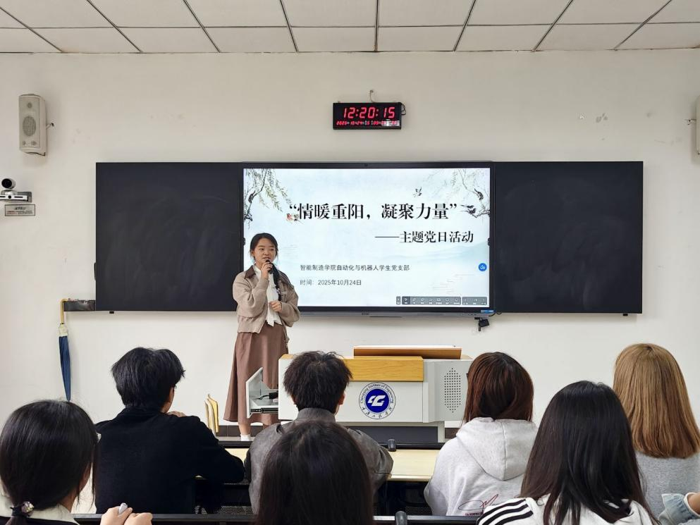 本网讯(文/图 余浩)为深入宣传中华优秀传统文化,巩固党建引领文化传承实践成果,智能制造学院自动化与机器人工程学生党支部于10月24日,在第六教学开展“情暖重阳,凝聚力量”主题宣讲党日活动,支部党员、发展对象、入党积极分子及入党申请人积极参加此次活动。
