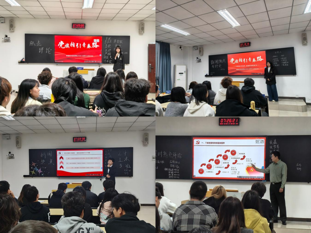 本网讯(文 范烨坪/图 陈万菊)为帮助青年学生明晰入党步骤与要求、端正入党动机、增强党性修养、坚定理想信念,10月28日,智慧城市建设学院学生支部委员会组织2024级全体同学在六教开展“党旗指引青春路”微党课进晨课宣讲活动,为青年学子搭建起近距离了解党、感悟党的精神内涵的互动平台。