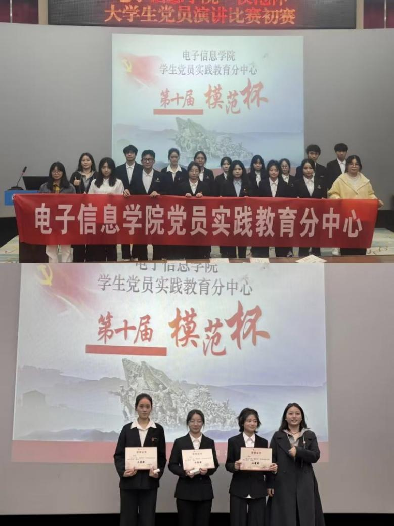 本网讯(文/朱小红 图/潘宁宁)为筑牢信仰之基、展现模范之姿,激励学生党员自觉传承红色基因、主动践行模范精神。电子信息学院学生党员实践教育中心于11月12日在办公楼报告厅举行“模范杯”大学生党员演讲比赛初赛。活动面向学院全体学生党员(含预备党员)、发展对象及入党积极分子,共有14名学子同台竞技。学院组织员马寒梅、大数据与人工智能学院组织员杨孟凡受邀担任评委并出席活动。