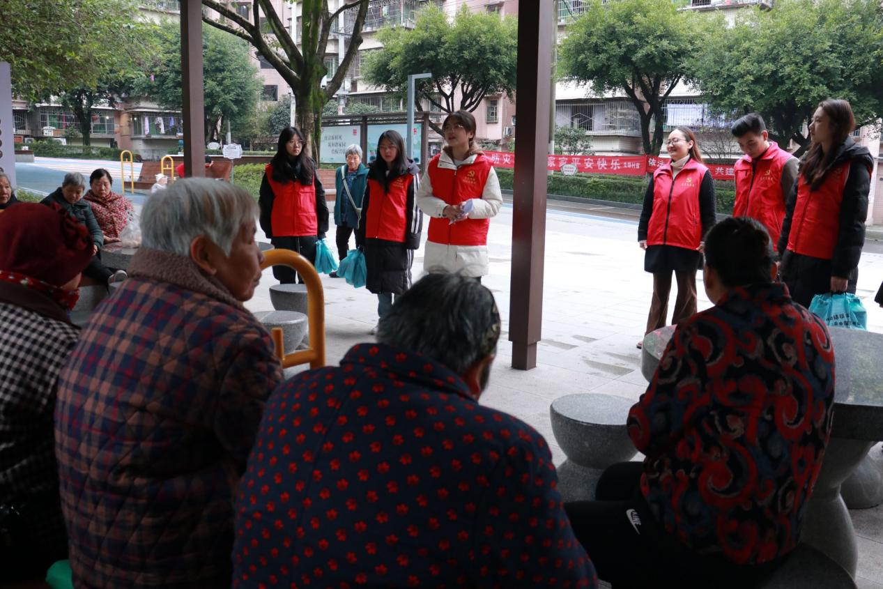 本网讯(文/图 黄玉洁/邓思懿)为充分发挥学生党员先锋模范作用,同时精准对接老年群体安全健康需求,11月23日,大数据与人工智能学院学生党员实践教育分中心走进重庆市巴南区花溪街道先锋村民委员会,成功举办“消防结核齐防控,安全安康伴夕阳”党建引领活动。活动以通俗宣讲、温情互动为核心,为当地老人送上实用的安全健康知识,搭建起老少共融的暖心桥梁。