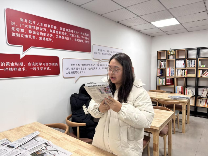本网讯(文/图 李美瑾/聂冰冰)为了让党报学习内容更生动可感、让理论学习与实践思考深度结合,12月10日,智慧城市建设学院学生党员实践教育中心第三期党报研读活动在和五工作站顺利开展。本次活动以“让党报学习生动可感、促理论实践深度融合”为核心,通过丰富形式推动党建学习接地气、聚人心。