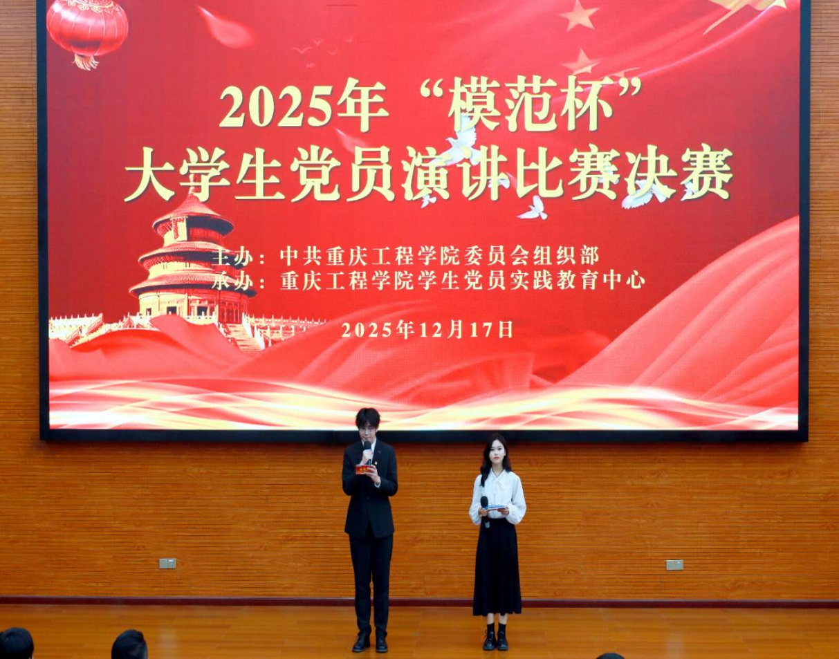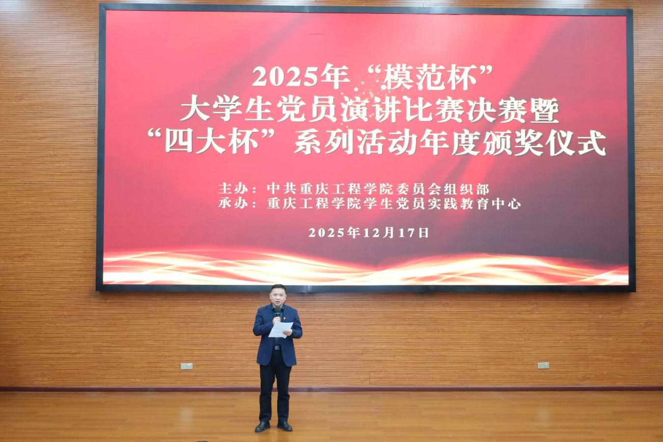 本网讯(文/图 曾心雨/王灿)为传承红色基因、弘扬红色精神,12月17日,由中共重庆工程学院委员会组织部主办的2025年“模范杯”大学生党员演讲比赛决赛暨“四大杯”年度颁奖仪式在第七教学楼807报告厅成功举办。学校党委组织部部长覃华伟,各二级党总支代表及师生共同参与活动。