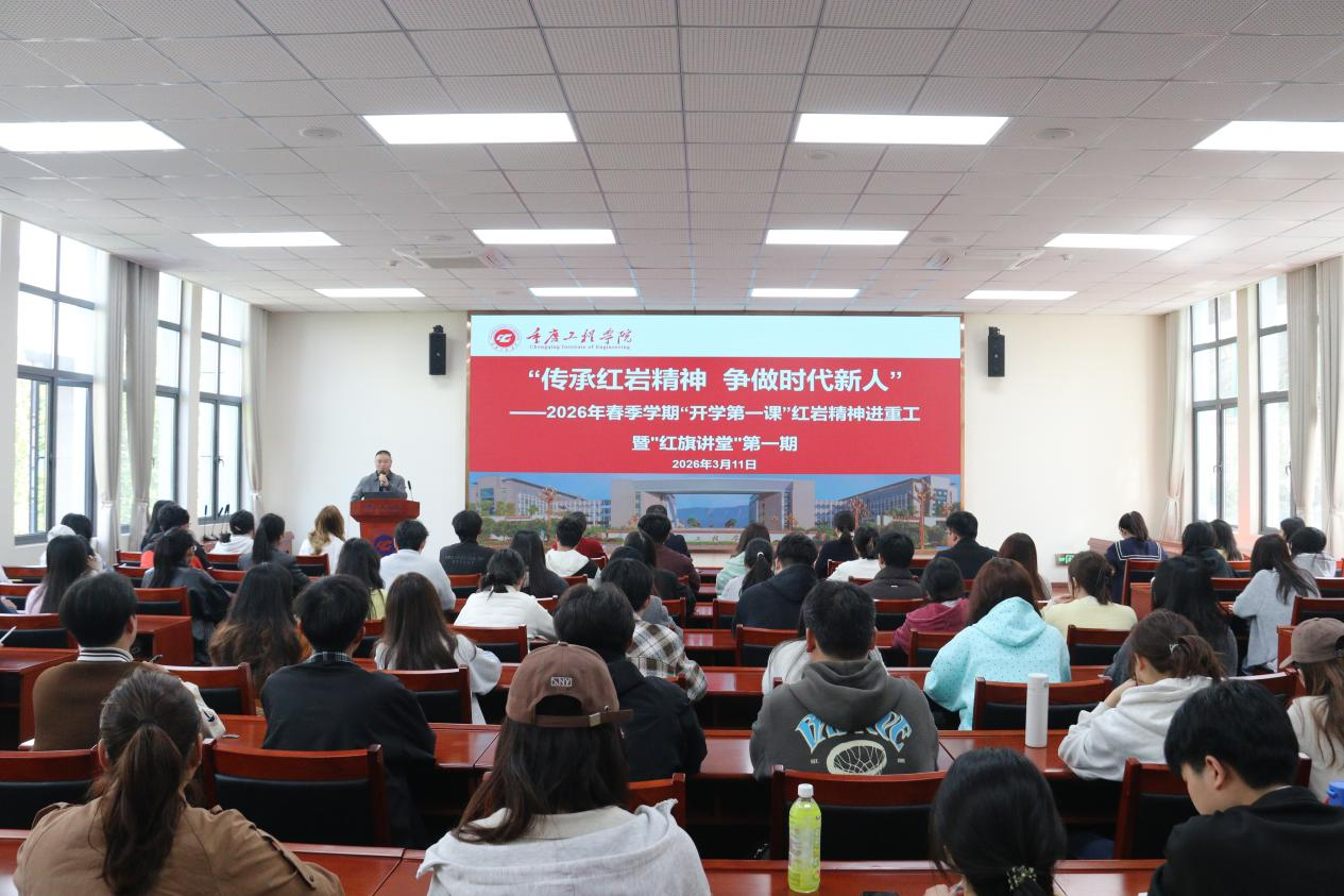 为深入学习贯彻党的二十大精神,赓续红色血脉,弘扬红岩精神,2026年春季学期伊始,重庆工程学院于3月5日下午在学术报告厅隆重举行“传承红岩精神 争做时代新人”——2026年春季学期“开学第一课”红岩精神进重工暨“红旗讲堂”第一期活动。学校党委组织部、党员实践教育中心相关负责人及师生代表齐聚一堂,共同聆听历史回响,汲取奋进力量。