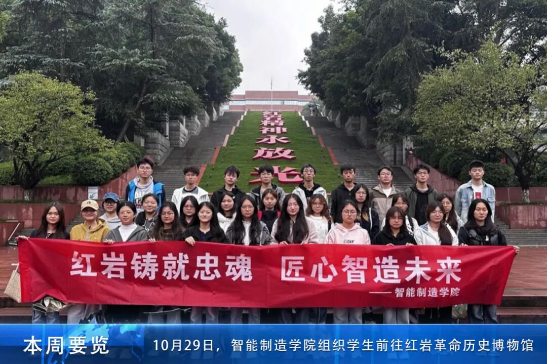 2025年10月29日,智能制造学院组织学生前往红岩革命历史博物馆,开展“红岩铸就忠魂,匠心智造未来”主题实践教育活动。同学们通过观看历史文物、聆听现场讲解,深刻感悟红岩精神,表示要将革命信仰转化为学习动力,在智能制造领域探索前行。