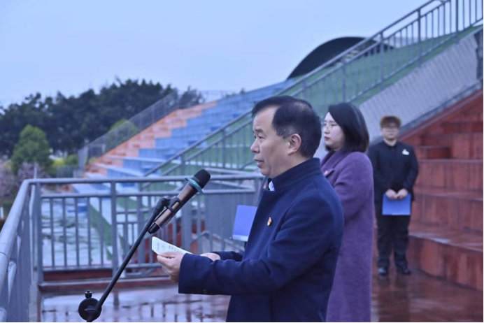 春风策马启新程,赤子丹心映红旗。3月2日,我校在两校区足球场分别隆重举行2025—2026学年第二学期开学升旗仪式。学校党委副书记唐小勇,党委委员、副校长王建东出席,党委学生工作部、校团委等部门负责人,各二级学院党总支书记、分团委书记、教师代表、辅导员代表,2024级、2025级全体同学共同参与本次仪式,携手开启新学期的崭新征程。