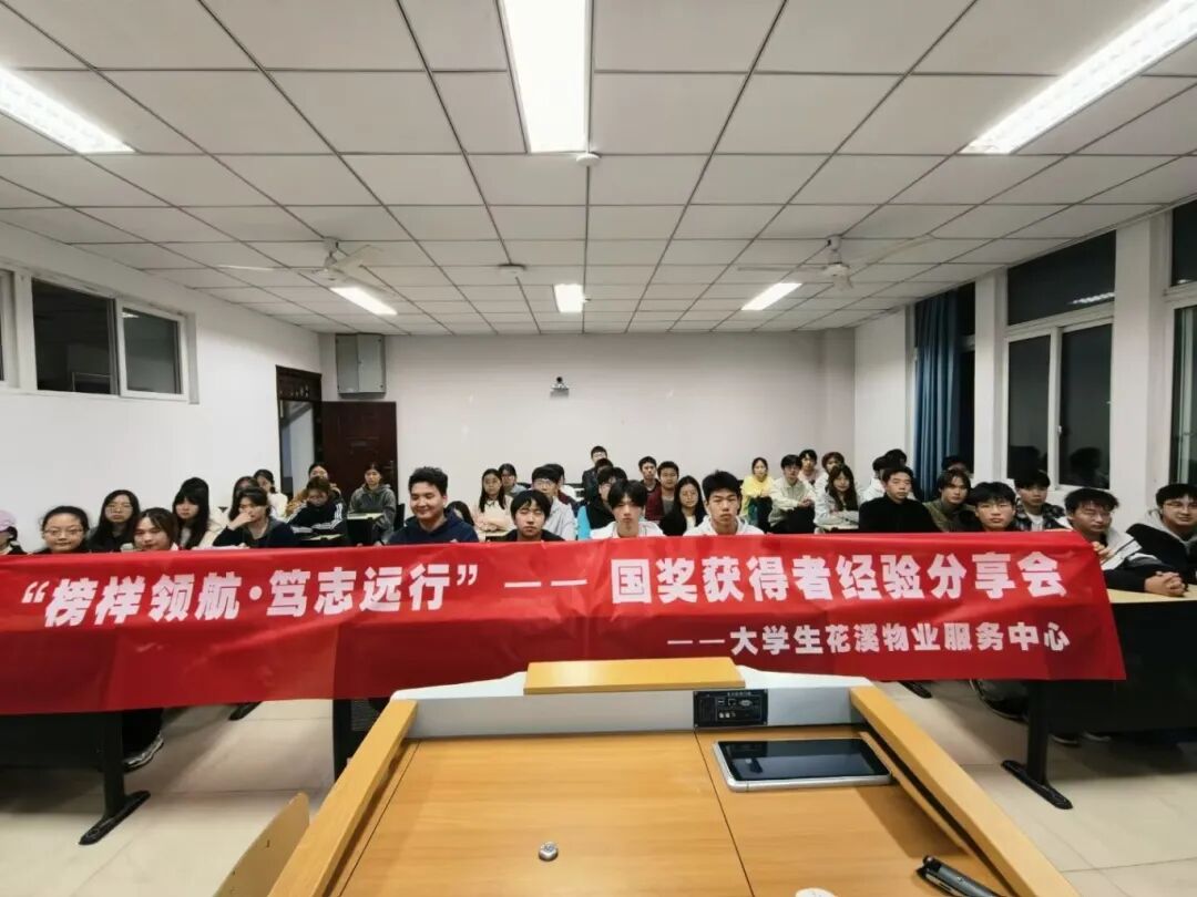 10月29日,大学生花溪物业服务中心在六教207教室举办国家奖学金获得者经验分享会,助力成员优化学习方法、明晰发展方向。