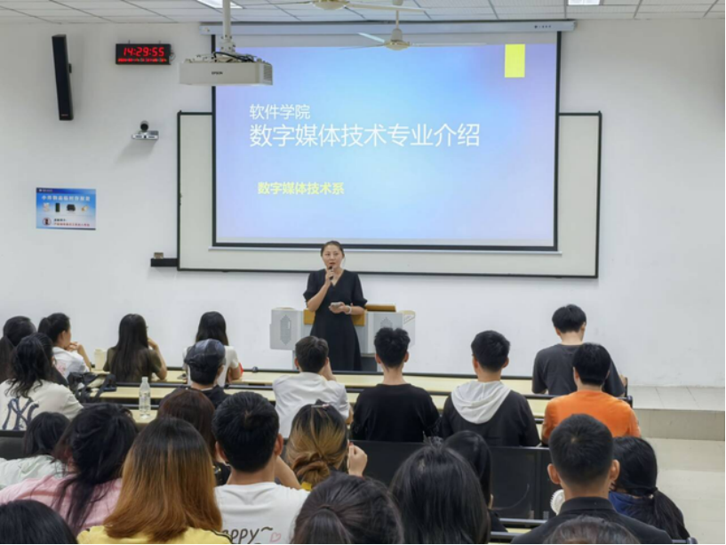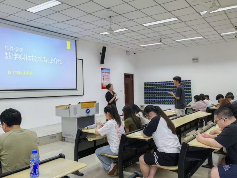 917日下午,软件学院在第一教学楼107教室举行专业教育2025级数字媒体技术全体专升本新生参会。本次宣讲旨在帮助专升本新生快速了解专业培养体系、明确学习方向,活动由韩祺琦老师主持,数字媒体技术系主任石磊老师、学院副院长张晓颖出席并讲话。