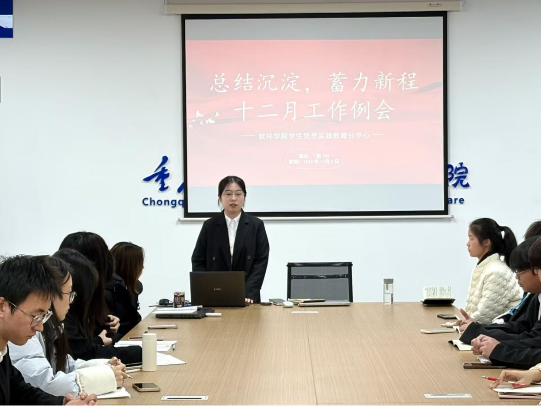 (文/图 软件学院 张鸿/黄思雨)为复盘工作成效、明晰前进方向,12月9日软件学院学生党员实践教育分中心于7教506召开十二月工作例会,会议由令狐晓桐同志主持,分中心各部门成员参会。