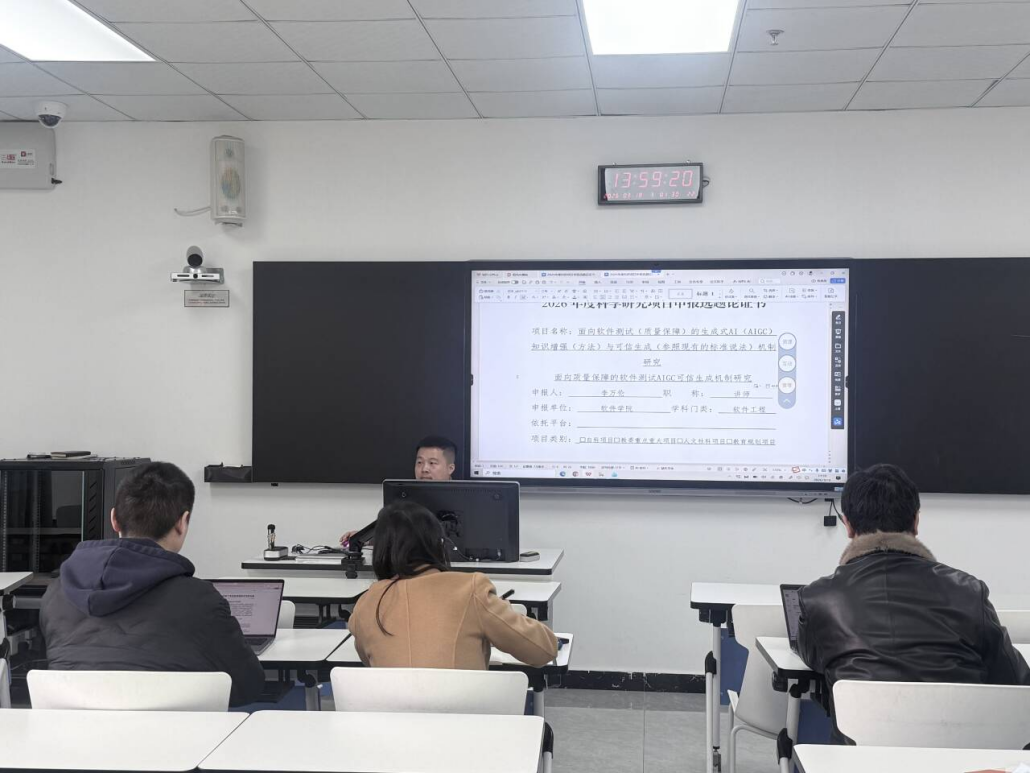 在科研分享环节,李万伦老师结合其申报的2026年度科研项目,作了题为《面向质量保障的软件测试AIGC可信生成机制研究》的报告。李万伦老师指出,随着软件系统日益复杂,传统测试方法已难以满足全场景覆盖的需求。他详细阐述了生成式人工智能(AIGC)在自动化测试领域的应用潜力,并针对当前AIGC存在的“生成质量不稳定”和“缺乏可信验证”两大痛点,提出了创新性的解决方案。他强调,通过引入领域知识图谱实现“知识增强”,并构建严格的“可信生成机制”,能够有效提升测试用例的生成质量与可靠性,为软件质量保障提供了新的理论视角。