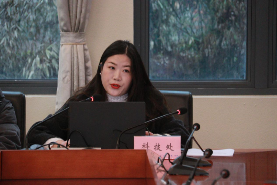 科技处副处长汪俊良作全校学科科研工作报告。他系统总结了2025年学校在“两库一平台”建设、“有组织科研”实施、人工智能创新应用研究中心运行及科技成果转化等方面的工作亮点。针对2026年工作,他提出三点规划:一是强化顶层设计,深入实施学科攻关计划;二是优化项目培育机制,建立重点项目长期跟踪体系;三是打造“智汇花溪”多层次品牌化学术活动矩阵,持续提升学校学术影响力。