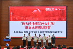 随后,大足区委党史研究室调研员王大革、大足区委党校教务科科长、副教授李远丹唐小勇书记分别伟大精神铸就伟大时代征文比赛获奖学生颁奖。获奖学生代表在发言中号召同学们我们不仅要做伟大精神的传承者,更要做伟大时代的续写者。