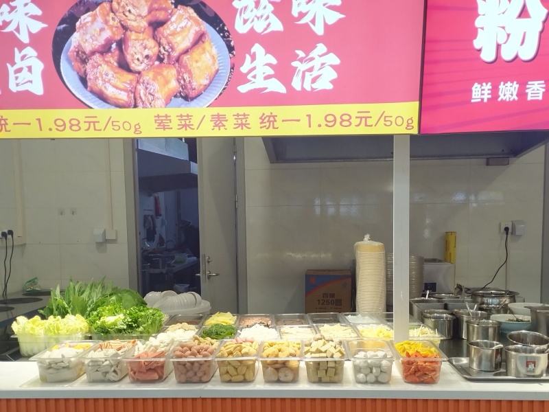 春华堂三食堂是由广东富德斯餐饮管理有限公司负责运营,走进这家食堂,如同踏入一个简约而温馨的美食世界。室内整体风格简约而不失格调,暖黄灯光洒在原木桌椅,角落绿植静静点缀,为空间添了生机与宁静。室外阳台摆放着休闲桌椅,阳光微风相伴,更添几分惬意。干锅香气浓郁,滋味十足;小面麻辣鲜香,面条劲道;麻辣烫食材自选,口味随心。自选餐区菜品琳琅满目,营养均衡。热气腾腾的钵钵菜,一上桌便香气扑鼻。这里既有家的温暖,也有家的味道,让人在烟火气中,度过一段温情满满的校园时光。