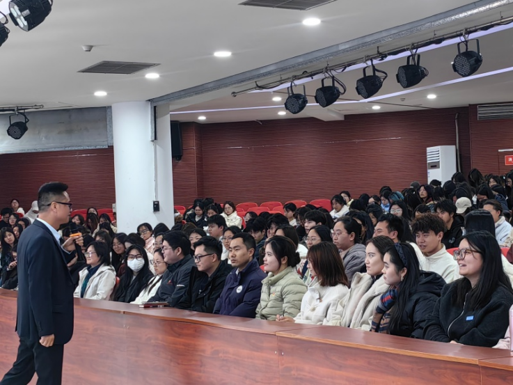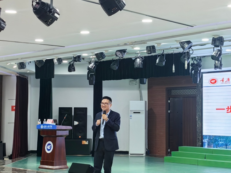 本次公开课特邀双桥经开区管委会办公室主任曾华主讲。曾华是首届“重庆市十大法治人物”、全国普法先进工作者、全国模范人民调解员。他拥有16年法律工作经验,累计为中小学及企事业单位授课120余场,受众超10万人次。授课过程中,曾华主要从防范意识、劳动意识、自律意识三个方面展开讲解,结合基层司法工作中的真实案例,深刻剖析了大学生日常学习生活中看似不经意“小举动”背后潜藏的法律风险,清晰阐释了“我以为”与“法律红线”之间的紧密关联,引导师生认清违法犯罪的沉重代价,时刻保持对法律的敬畏,明辨是非、远离雷区。