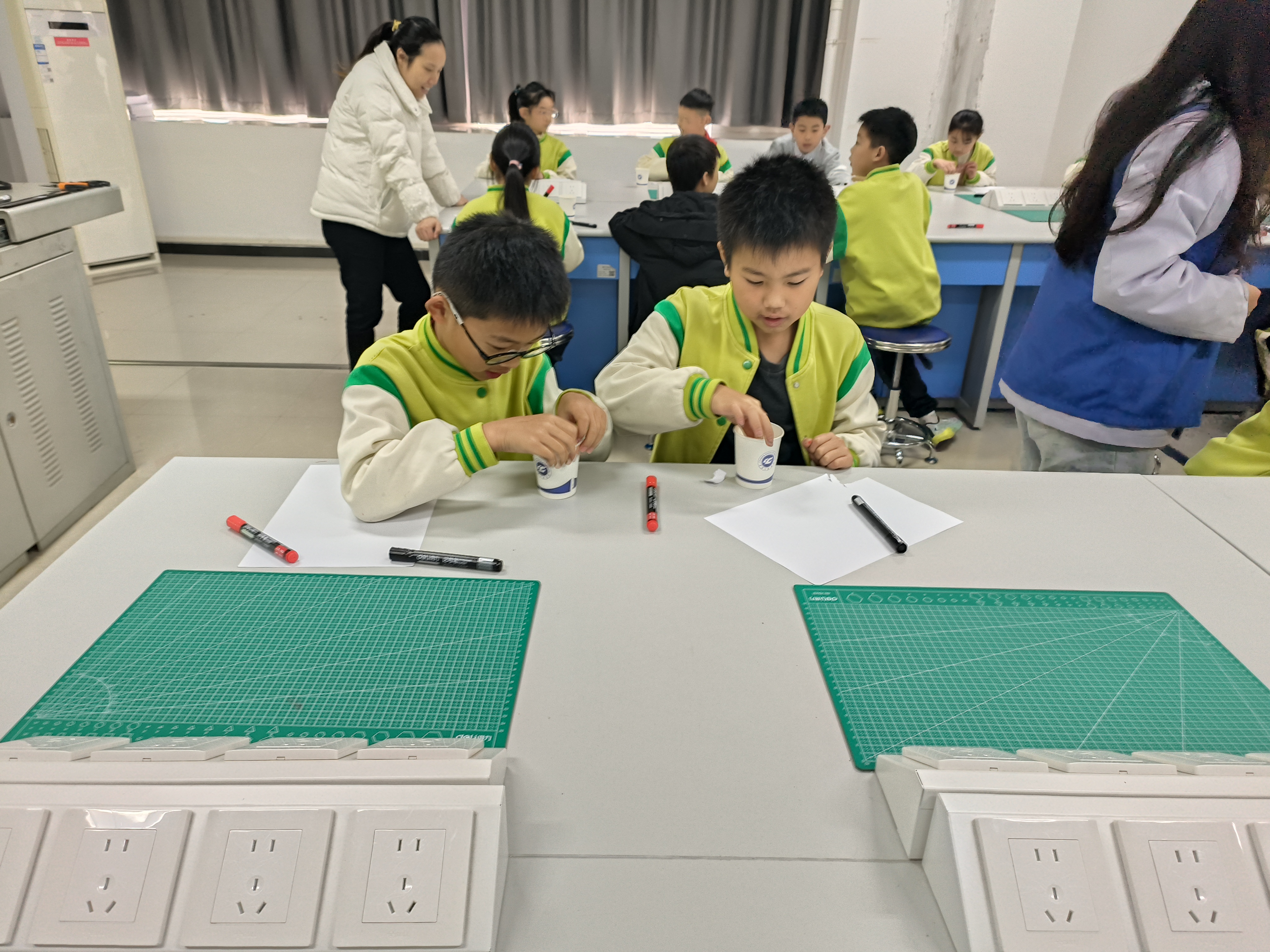 “玩转”物理实验环节将活动推向高潮。当天开设的“消失的图像”实验项目,精准契合小学生的认知特点。在“消失的图像”实验中,同学们用纸杯、自封袋、记号笔等简单道具,亲身见证了红色图案入水后“隐身”的神奇现象,通过教师讲解了解到光的折射与全反射原理。“教师讲解+学生动手”的模式,不仅锻炼了同学们的动手操作能力,更让抽象的物理概念变得生动易懂。
