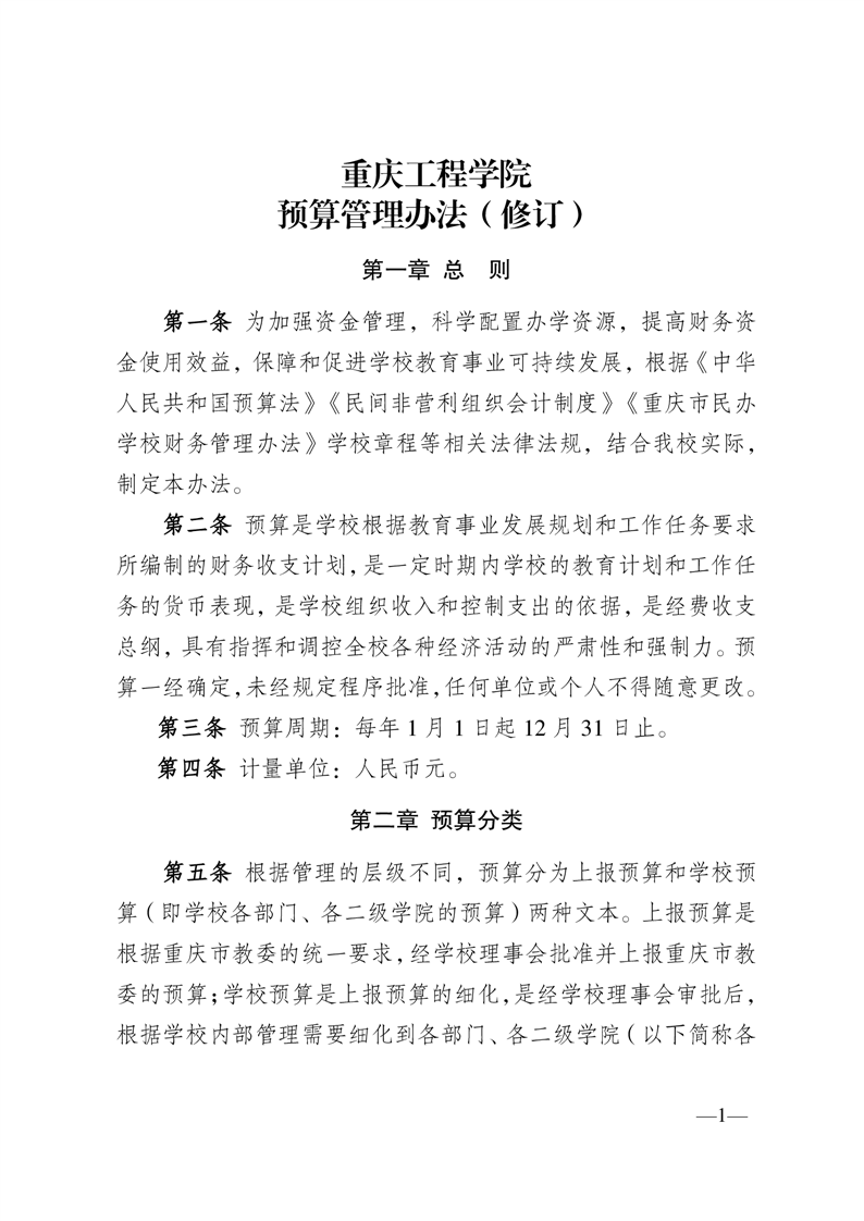 重庆工程学院预算管理办法(修订)
