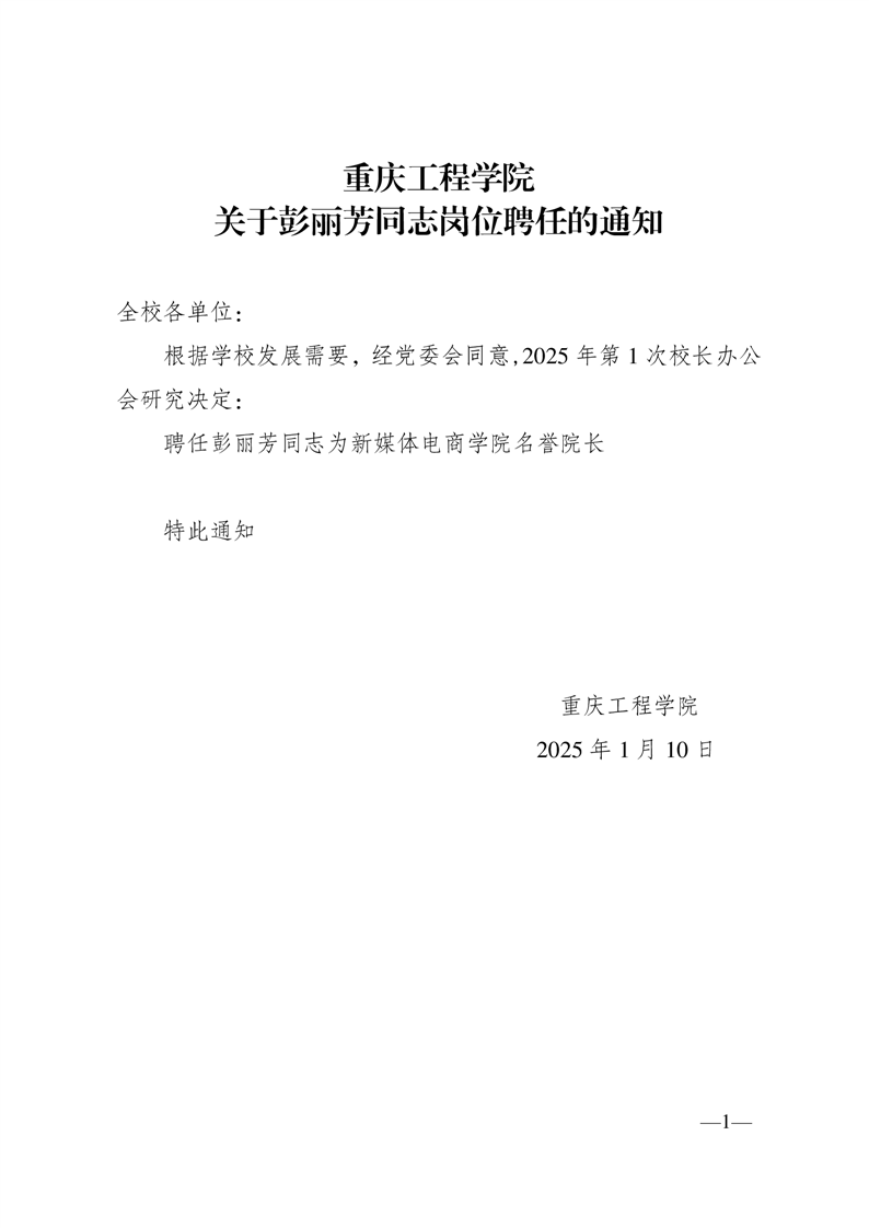 当前位置:首页 > 人事师资 > 关于彭丽芳同志岗位聘任的通知
