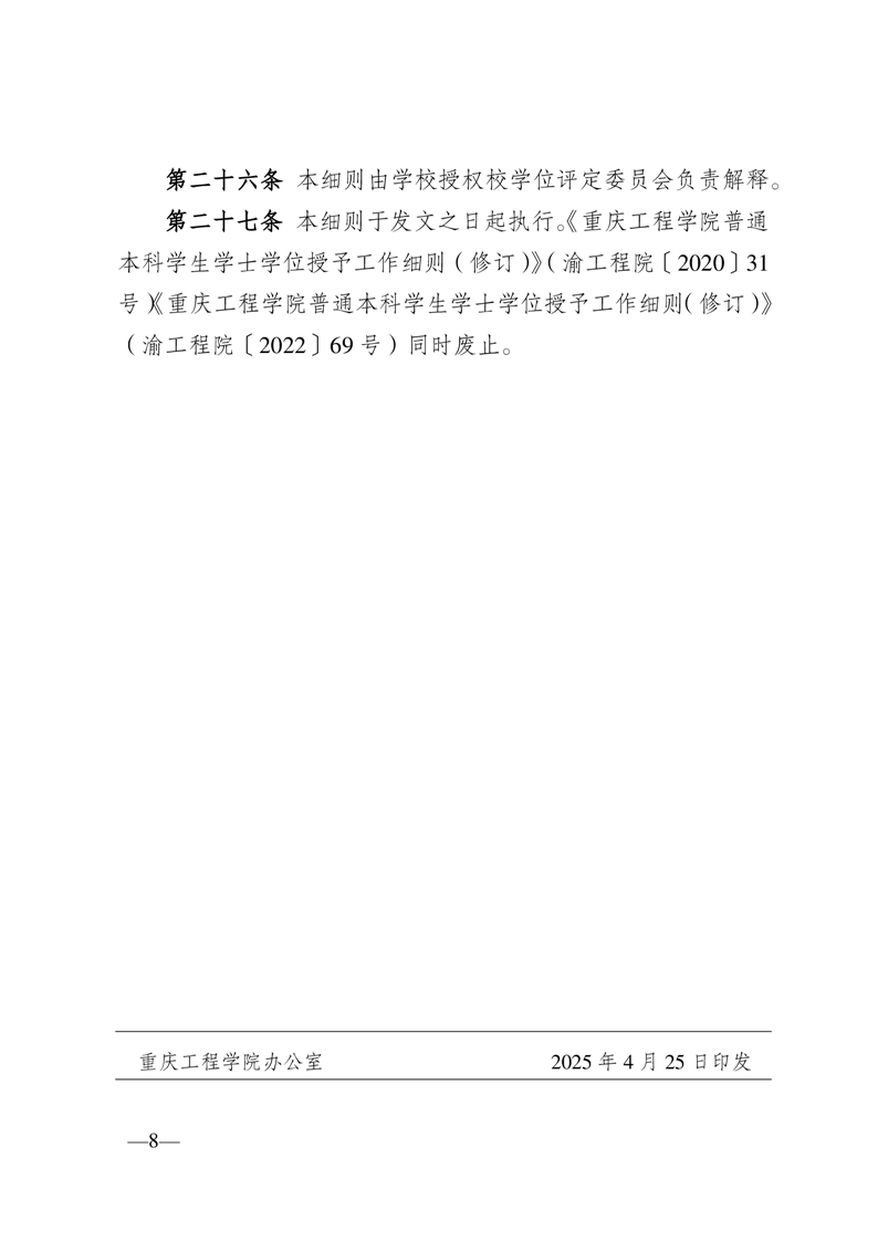 重庆工程学院普通本科学生学士学位授予工作细则