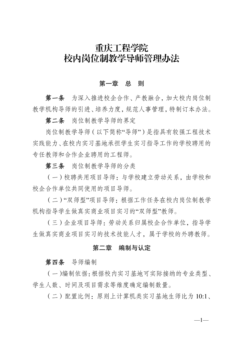 当前位置:首页 > 人事师资 > 重庆工程学院校内岗位制教学导师管理办法