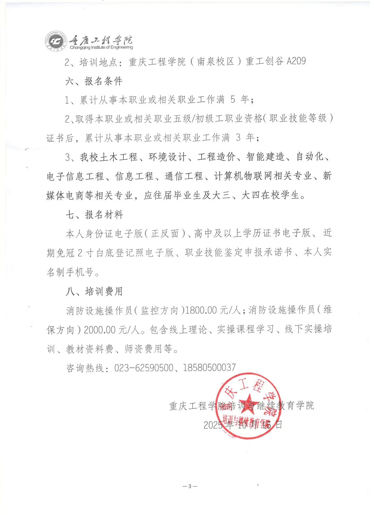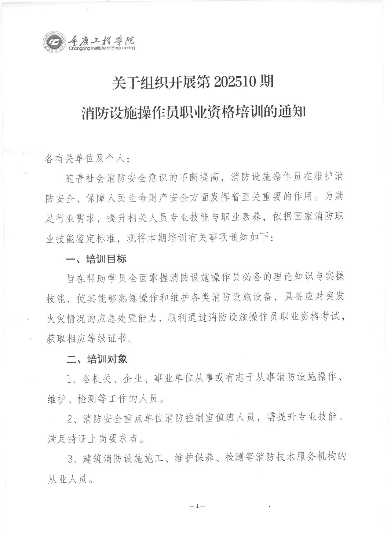 关于组织开展第202510期消防设施操作员职业资格培训的通知