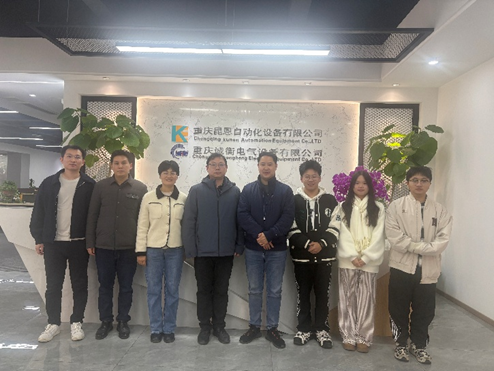 为加强校企合作,掌握学生实习动态, 11月27日上午,智能制造系副主任李洲荣、副主任张瑞洋及专任教师胡聪娟、张勇一行,走访了重庆昆恩自动化设备有限公司,看望了三名在此实习的学生,并与企业开展了深度交流。