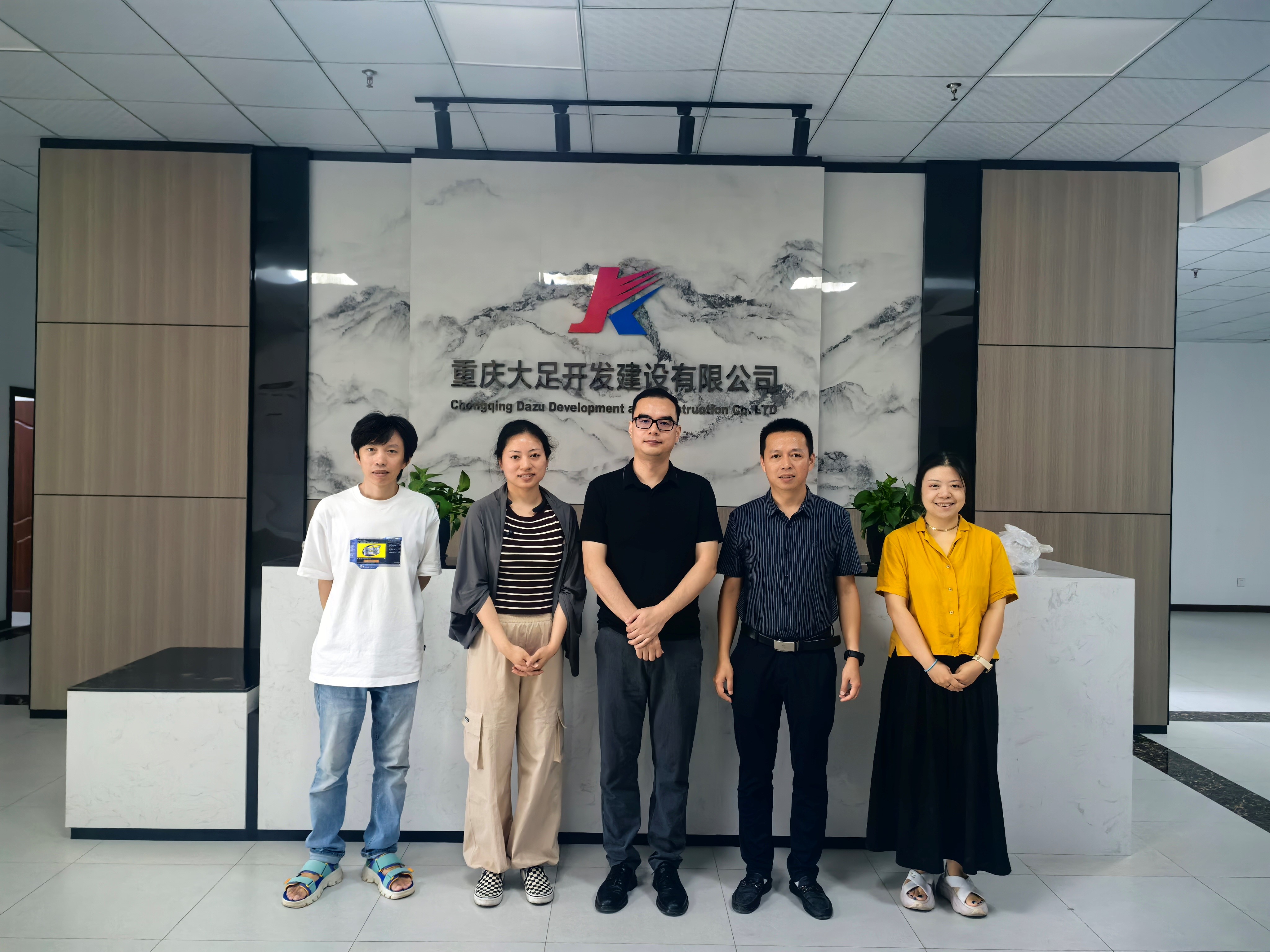 本网讯(文/图 刘涛)7月16日下午,副院长杨林林、院长助理弋玮玮、设计系主任陈娟娟、艺术与科技专业带头人刘涛一行赴大足开发建设公司开展“访企拓岗”专项调研。双方围绕人才培养、实习基地共建、文创项目合作等议题展开深度交流,旨在深化产教融合,拓宽毕业生就业路径。