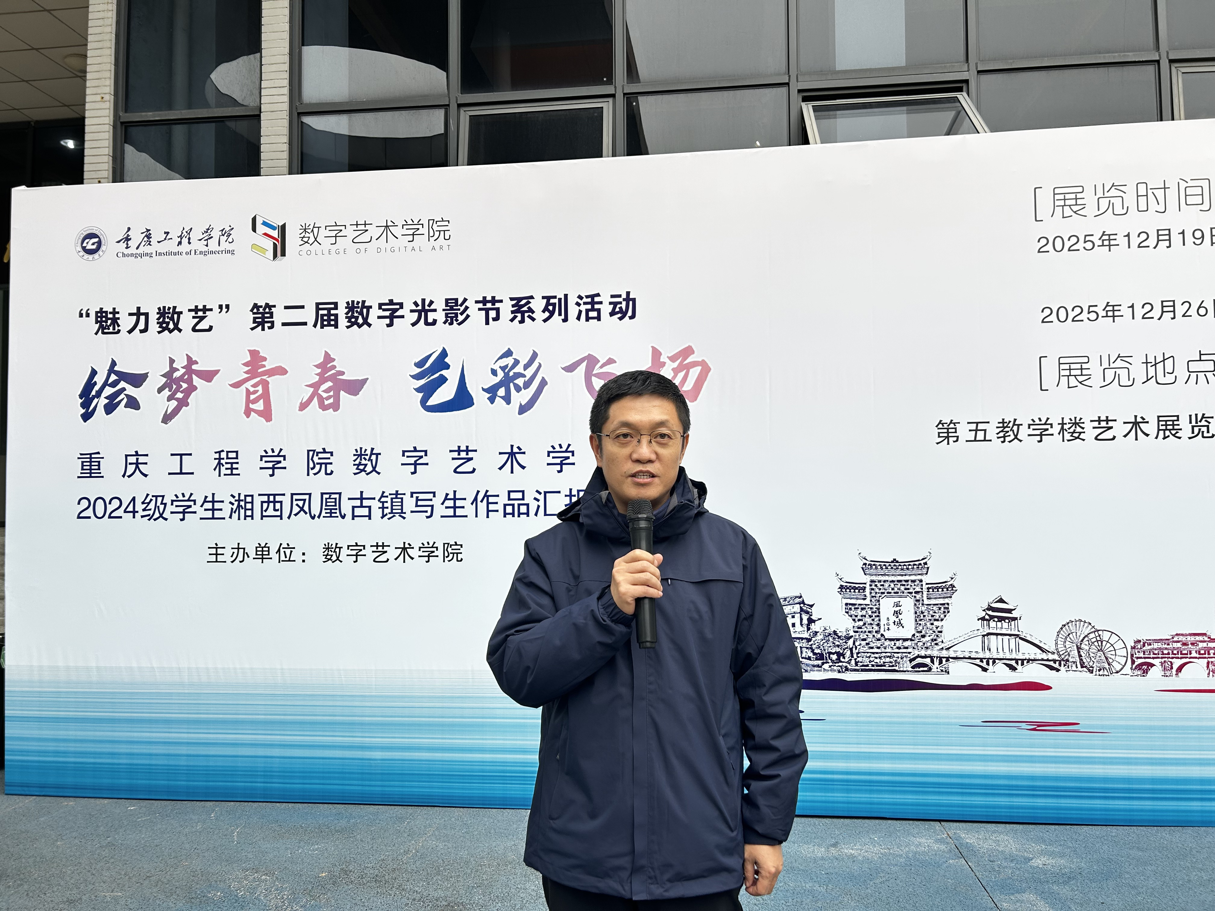 本网讯(文/图 赵正伟12 19 日下午,绘梦青春艺彩飞扬2024 级学生湘西凤凰古镇写生作品汇报展开幕式在第五教学楼艺术展览馆顺利举行。开幕式由学院副院长弋玮玮主持,全院师生积极参加本次活动